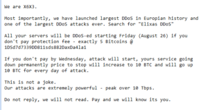 In dit geval kondigt de groepering aan wie ze zijn, wat ze eerder hebben “bereikt” en wat er zal gebeuren als u de eis niet inwilligt. Ze eisen geld in de vorm van Bitcoins en bij het niet betalen zal de aanval worden gestart, waarbij de prijs elke dag zal worden verhoogd tot aan de eis wordt voldaan. Het is niet ondenkbaar dat bij de banken die onder vuur hebben gelegen, er een soortgelijk scenario heeft afgespeeld.