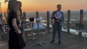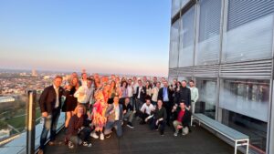 The evening program took place 110 meters above Cologne, at the exclusive Osman30 venue. From this special location, we enjoyed a breathtaking view over the city with pleasantly warm late-summer weather. The evening kicked off with a welcome drink on the rooftop terrace. What a sight! The sunset over the Rhine and the Cologne skyline set the perfect scene for the rest of the night.
