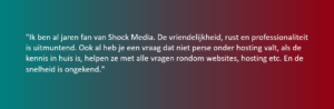 At Shock Media, we invest a lot of energy in our customers and are happy to invest in a pleasant, successful, and long-term collaboration. This is reflected in the feedback we receive from our customers. We take responsibility for the services we provide, but also proactively think along with improvements that may not directly fall within our services. The ultimate goal is to achieve success together!