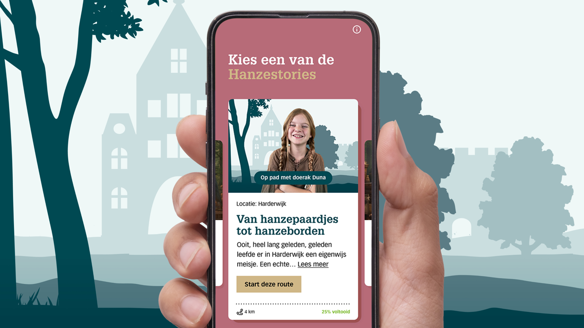 In the iconic year 2023, 800 years of Hanseatic cities were celebrated. Amazing developed 5 different cycling and walking routes in a digital game for the North Veluwe municipalities. These routes are enriched with stories of historical facts and myths, and brought to life by videos featuring characters from the Hanseatic era as your personal guide.