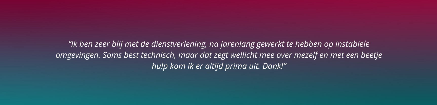 Zo gaan we bijvoorbeeld de komende periode aanvullende maatregelen doorvoeren om de ervaring die onze klanten hebben met onze support nog verder te verbeteren. Ook zijn er verschillende doelstellingen opgesteld om middels onze dienstverlening nog meer waarde te kunnen bieden aan onze klanten en onze klanten nog verder te ontzorgen. Uiteraard evalueren we deze doelstellingen periodiek!