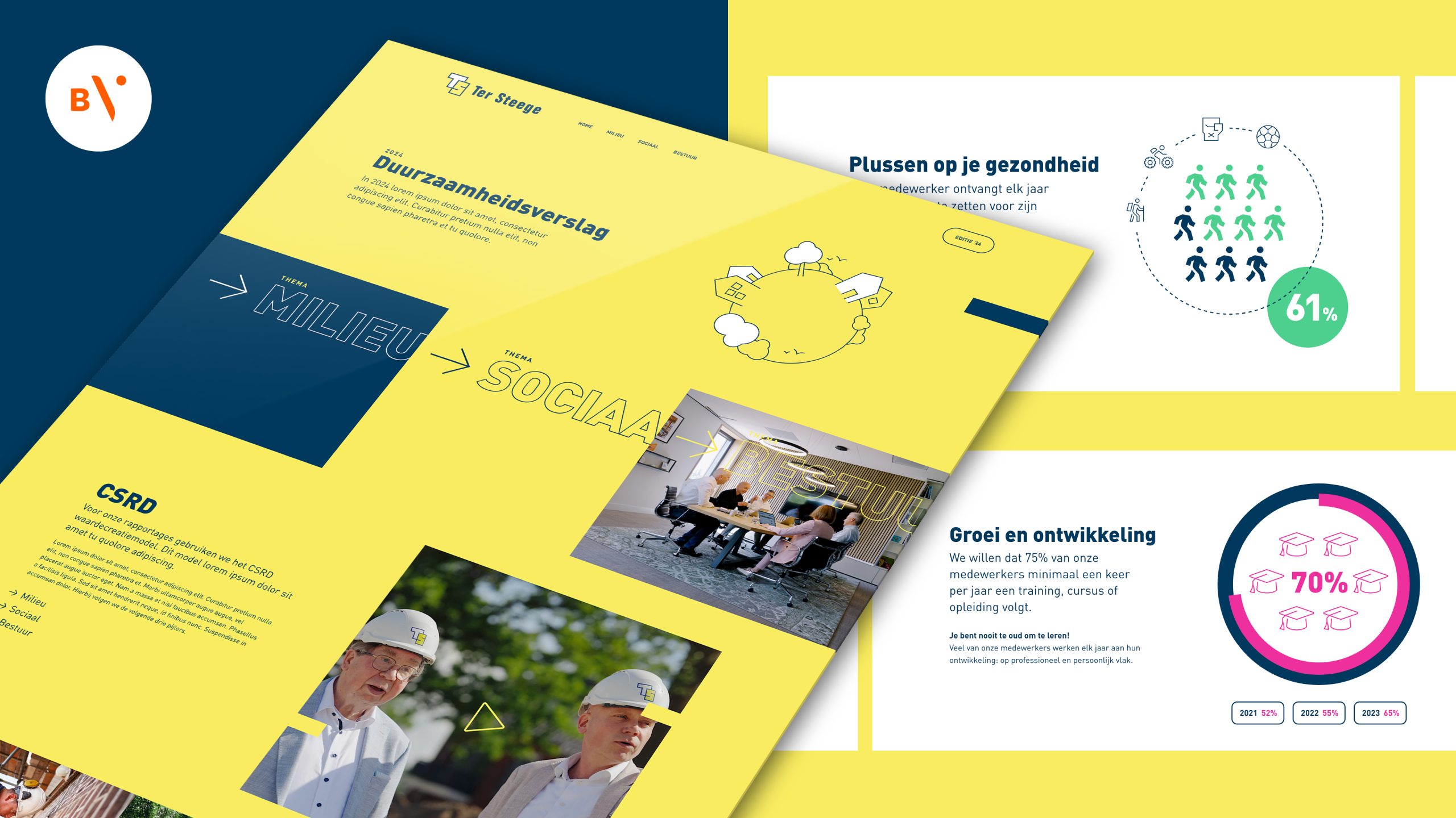 Voor Ter Steege Bouw Vastgoed presenteren we haar duurzame prestaties merkwaardig. Een op maat ontwikkeld platform vol fotografie, film, animatie en natuurlijk informatieve stukken. Allemaal in te vullen door Ter Steege’s eigen marketeers en ook nog eens zelf te publiceren op het moment dat het gewenst is. Superhandig én leuk om eens door te lezen en kijken.