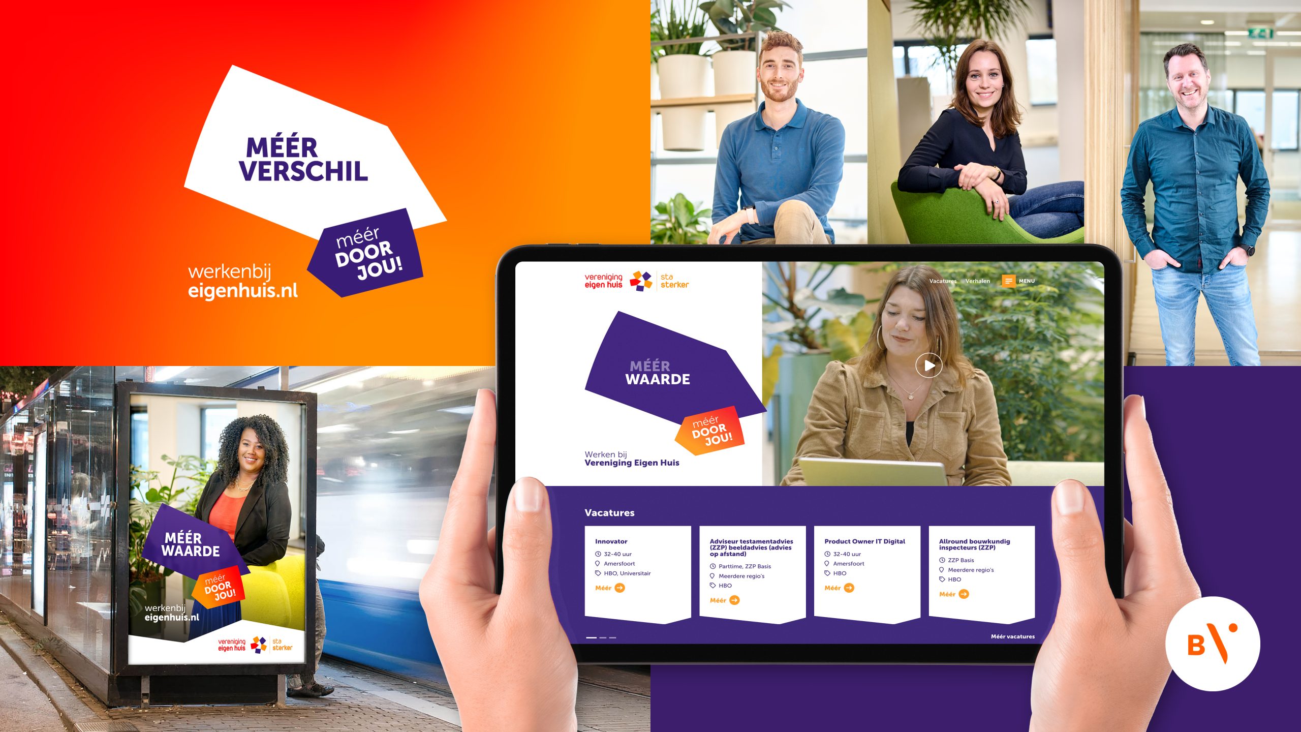 We zijn al 8 jaar lang verantwoordelijk voor alle campagnes van Vereniging Eigen Huis, waaronder ook deze campagne rondom de arbeidsmarktcommunicatie. Vereniging Eigen Huis is met een team van ruim 250 betrokken medewerkers altijd op zoek naar nieuwe collega’s. Dat is een uitdaging in de huidige arbeidsmarkt. In deze wervende campagne maken we duidelijk wat jij als potentiële werknemer kan betekenen. Naast het concept ontwikkelden we de vormgeving van de campagne, inclusief fotografie, film en website.